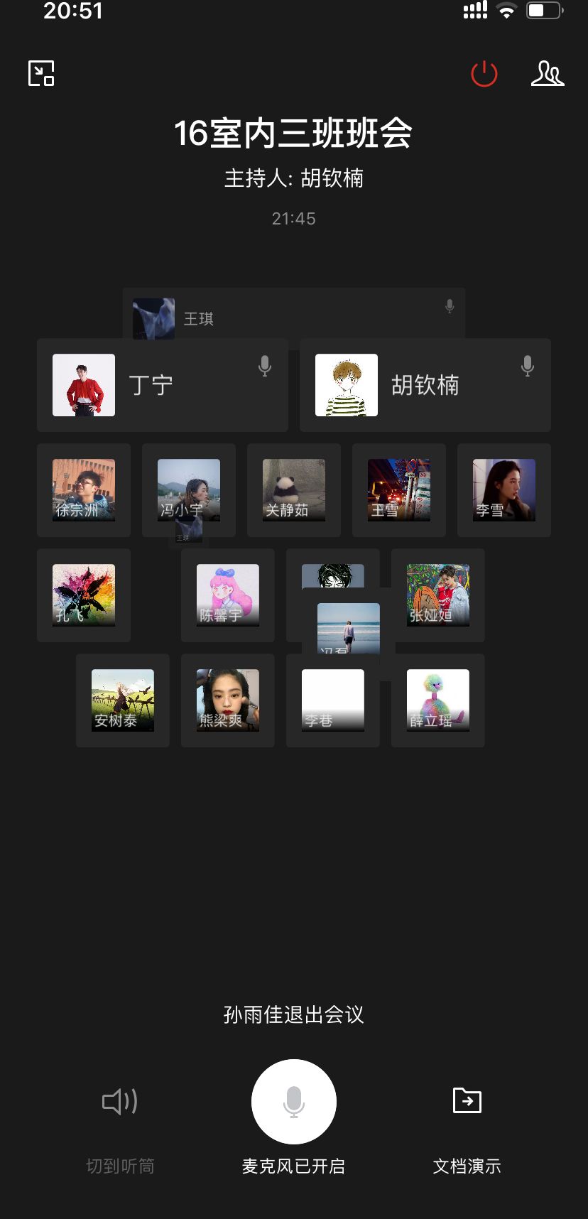 通过企业微信APP平台,各班主要学生干部参加了学生干部会议。晚上,娄彦、陈铁、韩晓旭参加了各班班会,对重点事项再次强调并与同学们进行交流。同学们纷纷表示会遵守纪律、服从学校安排;认为网上上课形式新颖,提高了学习兴趣,网络班会给同学们开辟了交流空间,拉进了同学之间、师生之间的距离;并对老师们的辛勤付出表示感谢。