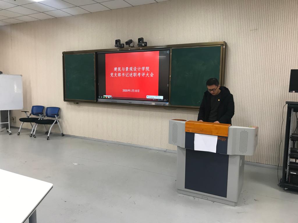 根据《2019年度党支部书记履行全面从严治党责任及抓基层党建工作述职工作方案》,1月10日上午,建筑与景观设计学院召开党支部书记述职考评大会,大会由党总支书记张东深主持,全体党员参加会议。