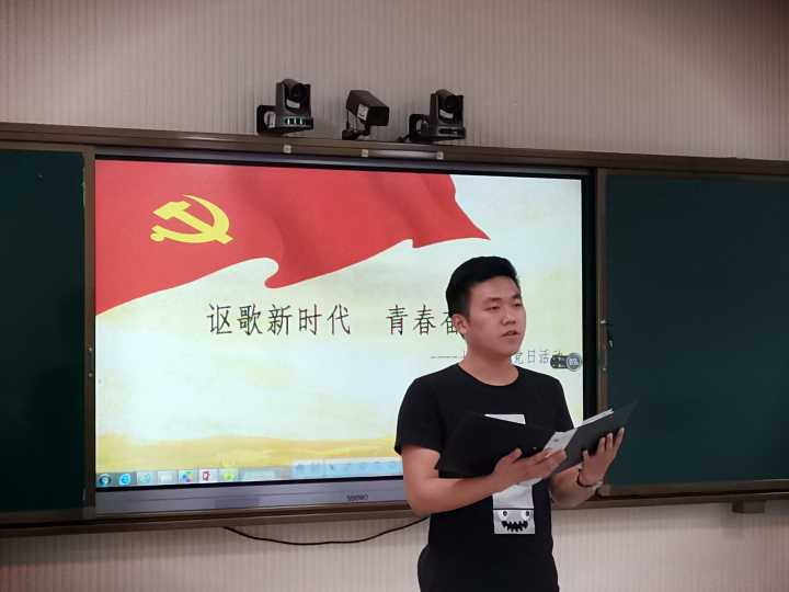 活动中,学生党员代表以演讲的方式表达了对党的祝福。魏千里、徐世伟、李紫萱、马鹏潇等党员代表依次上台,分别进行了主题为《忆时代,奋斗行》、《新时代,青春是用来奋斗的》、《红色的中国》、《新时代,青春献给党》的演讲。他们联系自己的实际,用铿锵有力的声音、生气勃勃的朝气,充满深情地表达了对党的热爱与忠诚,歌颂了党的伟大。