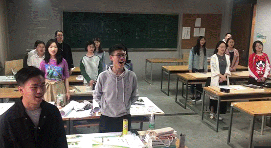 最后,全班同学起立合唱团歌《五月的花海》,班会在同学们激昂的歌声中结束。