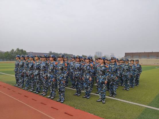 军训时长14天,军训开始后的主要训练内容是对站军姿、立正、稍息、四面转发、齐步走等项目进行规范,同时还有对内务的规范。为了使同学们及时领悟到动作要领,教官们也耐心讲解,反复校正,亲身示范,同学们则认真领会,积极训练。训练场上,新生学子们犹如真正的战士,身姿挺拔,意志不屈。女生们巾帼不让须眉,个个英气逼人,赢得了教官的阵阵夸奖,同时也激起了男生们的斗志,气势上丝毫不肯退让。他们整齐的步伐,像一首铿锵有力的烈日战歌;他们挺立的身姿,是一抹活泼的秋日绿意。在这里,我们一同接受军训的洗礼;在这里,我们一同体验军训的魅力。