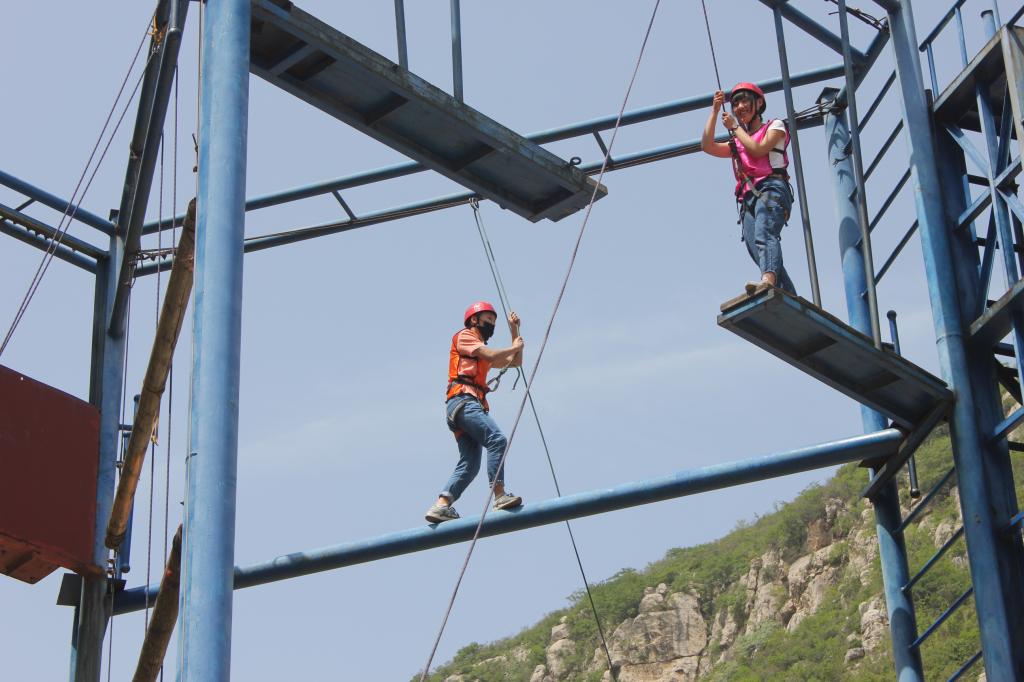 活动开始,拓展教练介绍了今天活动的内容,让大家自行进行分组,选出队长,制定了队名、队旗,进行了组队演示。随后,大家进行第一个活动“高空项目”,其中包括穿越断桥、攀岩、高空独木桥,同学们纷纷相互鼓励完成任务,充分锻炼了同学们的勇气。接着,大家进行第二个活动“圣塔”,任务中充分体现出同学们团队意识,大家纷纷开动脑力积极思考,最终大家顺利过关。随后,是标新立异的多人足快跑“万众一心”,要求同学们集体横着走一段距离,充分锻炼了大家的平衡意识和合作意识。最终,活动圆满结束。活动过后,同学们纷纷受益匪浅。