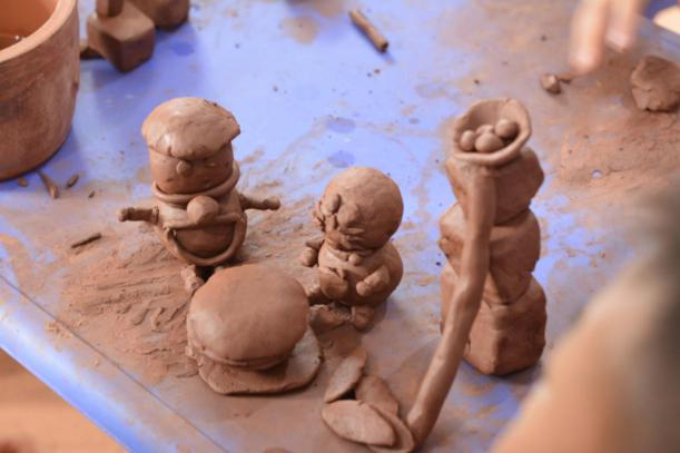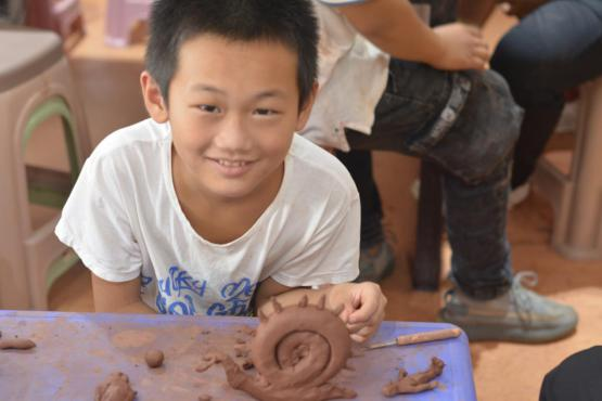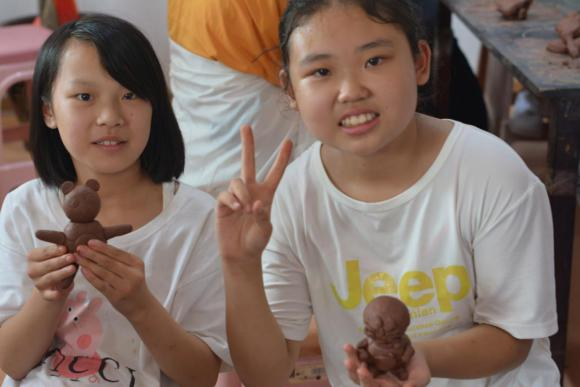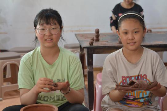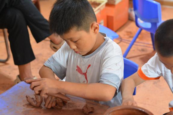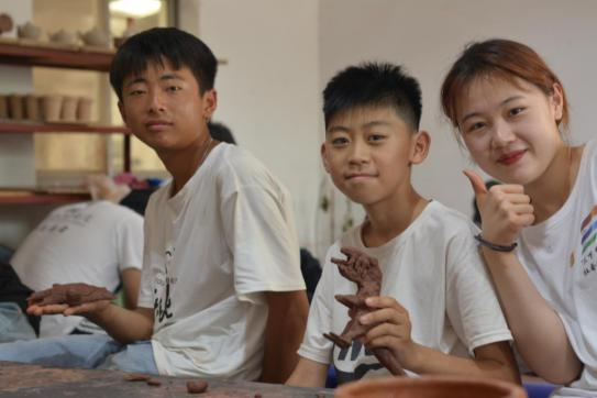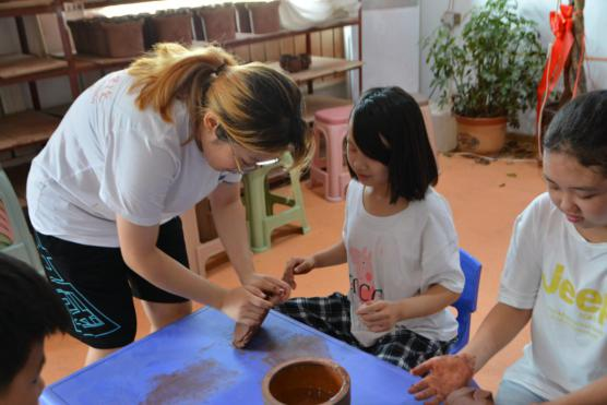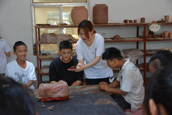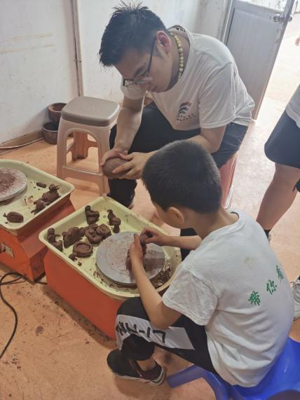 在接下来的时间里,团队志愿者带领孩子来到工作坊,让孩子们亲手体验儒陶的制作工艺,公司负责人吕辉华为孩子们准备了制作儒陶的材料和工具。期间,孩子们也是对此次的体验充满兴趣,告诉我们“自己从来没有这样去玩过泥巴,没想到泥巴还能做出这样有趣的作品”,欢声笑语中我们协助每个孩子完成了属于自己的陶艺作品。活动结束后,我们将联合微公益协会以线上的形式为孩子们的作品进行公益义卖,义卖所得均作为爱心善款捐赠给微公益的孩子们。