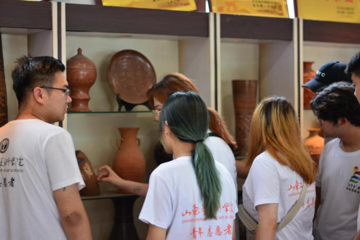 在山东儒陶工艺制品有限公司和微公益的积极配合下活动顺利开展,首先,团队志愿者带领50名儿童参观学习儒陶文化的产生和发展以及制陶工艺的流程,志愿者凭借自身的专业学识为孩子们讲解着一件件作品,带他们走进了带有千年古韵的艺术殿堂。