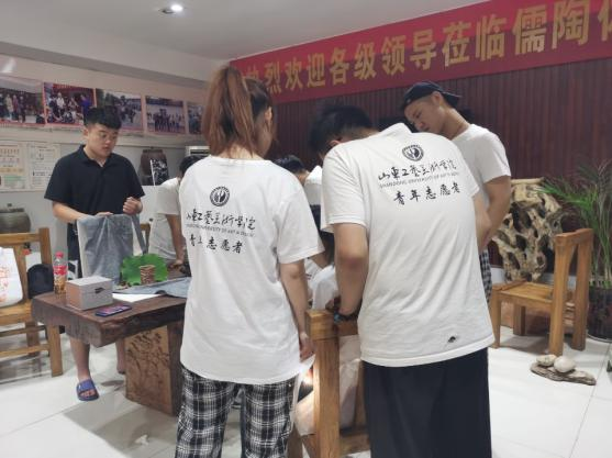 团队与“返家乡”紧密结合,实践调研家乡鲁陶、儒陶、鲁柘砚文化的发展现状。期间,团队来到泗水县鲁柘砚工艺研究所,先后拜访了鲁柘砚国家非遗大师杨玉祯老先生和陶艺大师刘静杰老先生,实地了解“鲁陶”工艺的发展现状。