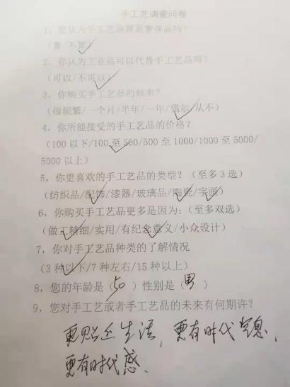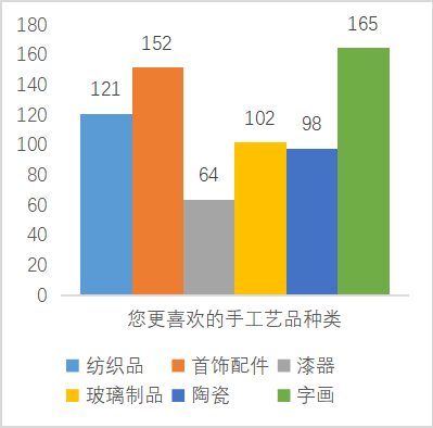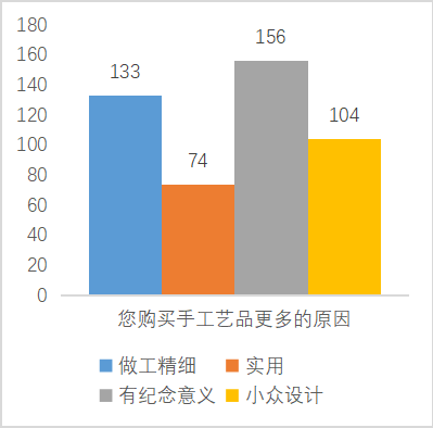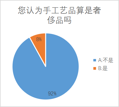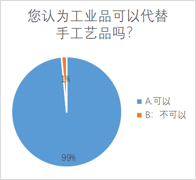 从调查问卷中我们不难看出,绝大多数的人认为手工艺品是不能被工业制品所代替的,而手工艺品却很少有机会出现在我们的视野中我想这也是手工艺品在国内很难发展的原因之一。