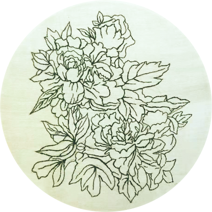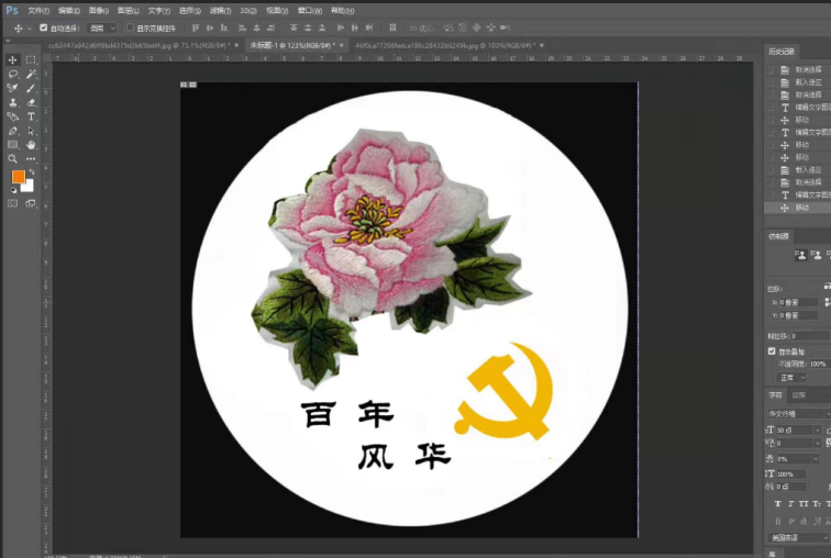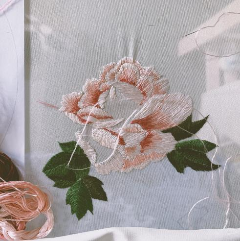 在我们熟悉了这些作品之后,正值建党百年,我们创作了一系列主题创作,我们和老师交流了很多次,改稿子也改了很多次,最终决定以鲁绣为主题的创作主要以国花牡丹为原型,搭配上我们的党徽和百年风华的题字,由于时间关系,这个作品目前仍然还在进行当中。(如图49)