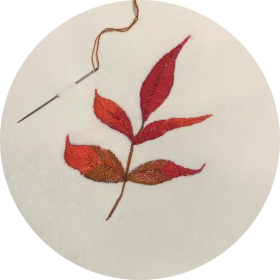 在交流的过程中,戎老师耐心的给我们讲解鲁绣的针法和特色(如图21),并给我们展示了她的许多作品,包括双面绣和最具鲁绣特色的发丝绣等。