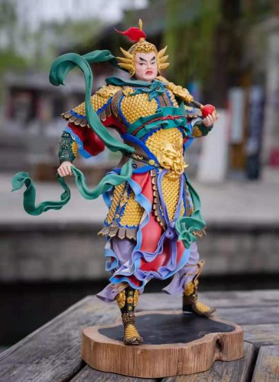 离开鲁绣工作室后,我们随即找到了面塑的非遗传承人梁长乐老师,梁老师虽然是90后,但是雕塑的手法却极其熟练娴熟,据他说,他30出头的年纪做面塑却已经做了25年有余,随着对面塑的认识越来越深,越是觉着面塑所能表达的事物真的是很广泛,从人物、动物、花鸟虫鱼、亭台楼阁等,只要是绘画可以表现出来的事物面塑也一样可以表现出来。他的面塑题材以四大名著、历史典故、佛教道教、戏曲中的人物和故事为主,有圆雕、浮雕、微雕、效仿等手法,大的可以做到60—70厘米,小的可以放到半个核桃壳中,大小只有几毫米,不管是原料的调配还是塑造手法,都在不断地精进,揉、捏、塑、按、推、拉、拨、挑,坚持从传统面塑艺术中寻找快乐,每一步都一气呵成,创造了一个个栩栩如生的人物形象。