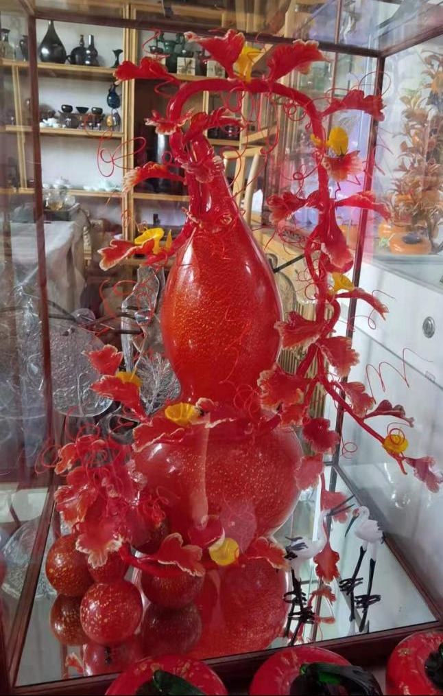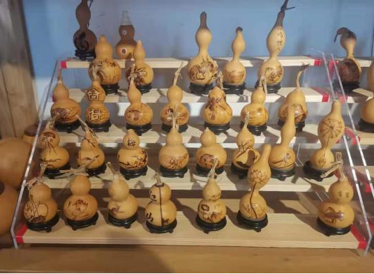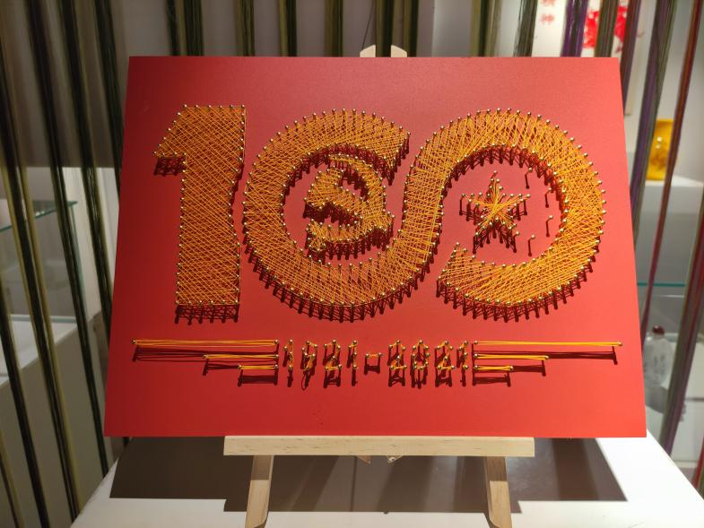 正值建党一百周年,馆中陈列着许多关于庆祝建党百年的艺术佳作,有雕塑作品,结艺作品,葫芦烙画作品等。(如图4、5、6、7)
