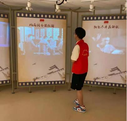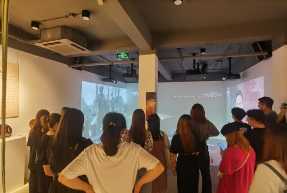 在离开了各位传承人老师的工作室后,在工作站老师的带领下,我们来到了百花洲为庆祝建党百年而特别设立的投影博物馆,在此处,我们更直观的见证了党和国家百年来走过的风风雨雨(如图50)。