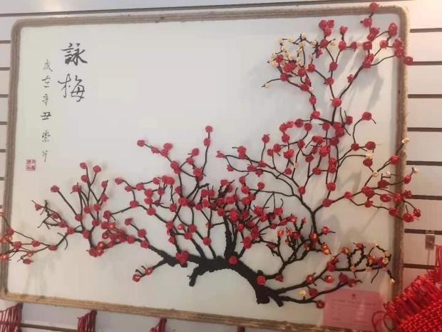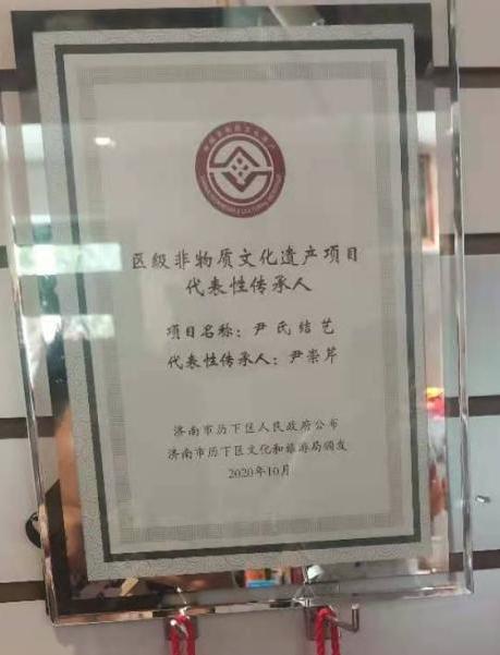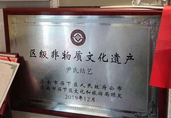下午我们拜访了“结艺”传承人尹崇芹老师,尹老师是济南金梦工艺中国结制作中心创始人,济南十大民间艺术家,济南市十大杰出人物、济南市妇联巾帼建功标兵、济南市妇联三八红旗手(如图33)。