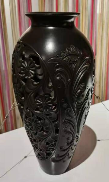 在馆中,我们有机会见到一些工艺美术大师的艺术作品。如过去的彩陶文化等(如图3),但映入眼帘的是现代工艺美术大师艺术作品,涉猎范围之大,题材取材之广,都让我们惊叹。