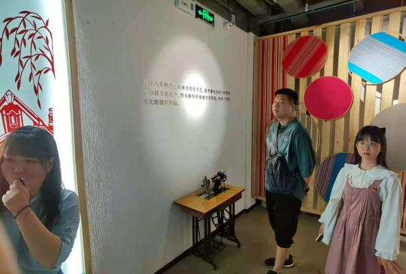 首先,我们在百花洲非遗博物馆,通过当地投影的方式来看当地手工艺术的历史变迁(如图1、2),通过几代人的努力,山东地区的手工艺术得到了长足的发展。