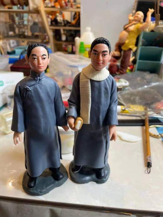 面塑方向的同学们则选择了当年中共一大建党时的山东的两位党员前辈,邓恩铭和王尽美同志,结合当时时代的特色和史书记载进行了想象创作,力求表现出人物形象。(如图50)