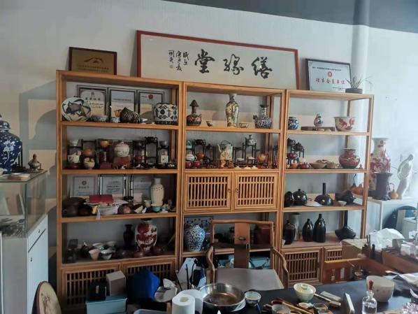 图42-2 参观省级非遗章丘黑瓷传承人老师工作室与作品