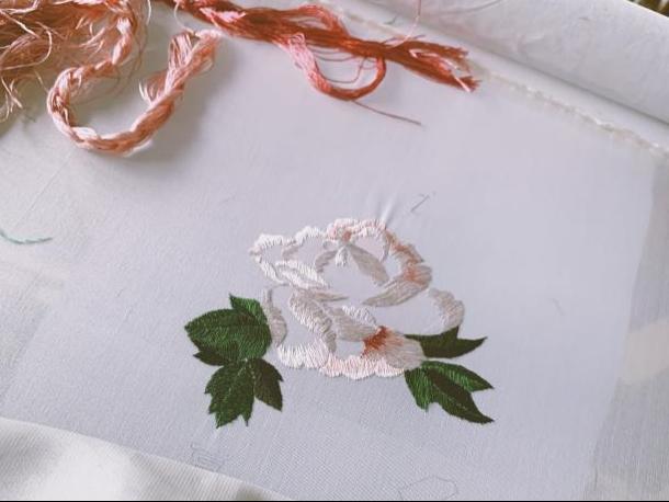 通过对百花洲当地进行了参观与学习之后,我们对鲁绣和面塑两项非遗进行研学,非常荣幸的邀请到朱老师、戎老师和梁老师带我们亲手完成一些作品(如图43、44)。