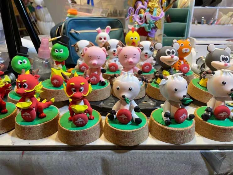 学习面塑的同学也开始尝试简单人物和其他节日元素的主题创作,使用了其他的材料比如树脂粘土,紫砂等。(如图48)