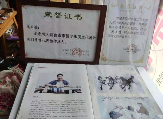 在本次社会实践中,我们有幸见到了鲁绣的非遗传承人戎玉蕊老师(如图20),