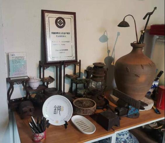 图42-1 参观省级非物质文化遗产章丘黑瓷传承人老师工作室与作品