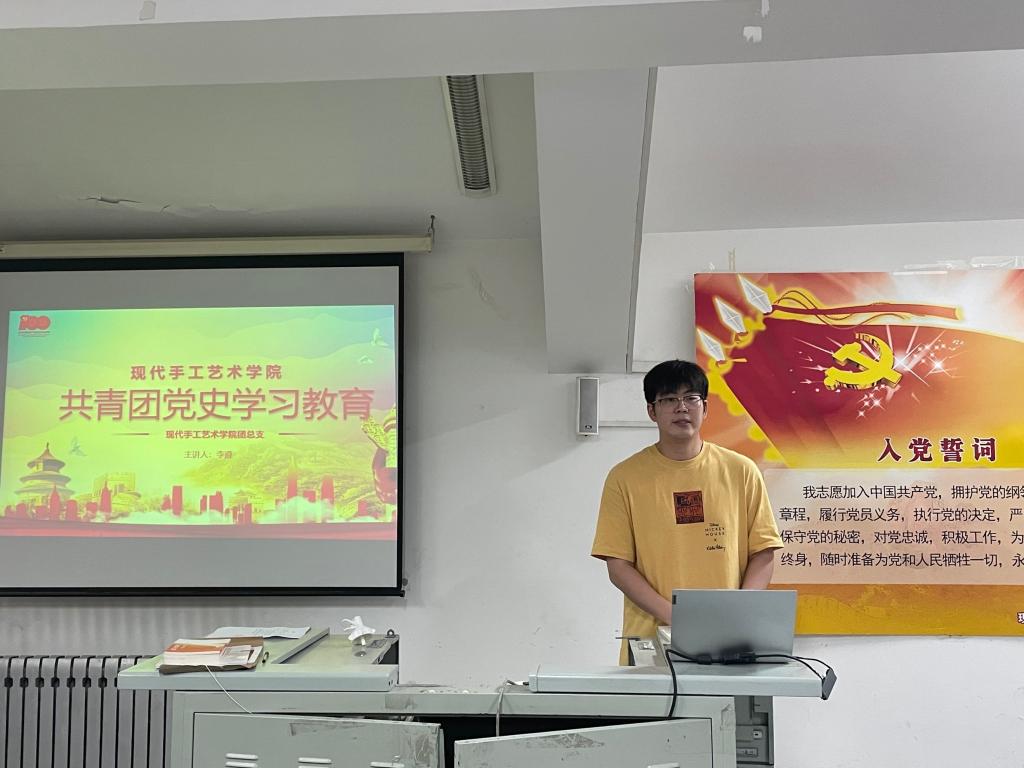 今年是中国共产党成立100周年。为深入贯彻落实习近平总书记在党史学习教育动员大会上重要讲话精神和习近平总书记关于青年工作的重要论述,根据共青团中央《关于在全团开展“学党史、强信念、跟党走”学习教育的通知》要求,引导广大团员青年厚植爱党、爱国、爱社会主义的情感,让红色基因、革命薪火代代传承。2021年7月5日,现代手工艺术学院面向学院团员青年开展了党史学习教育。