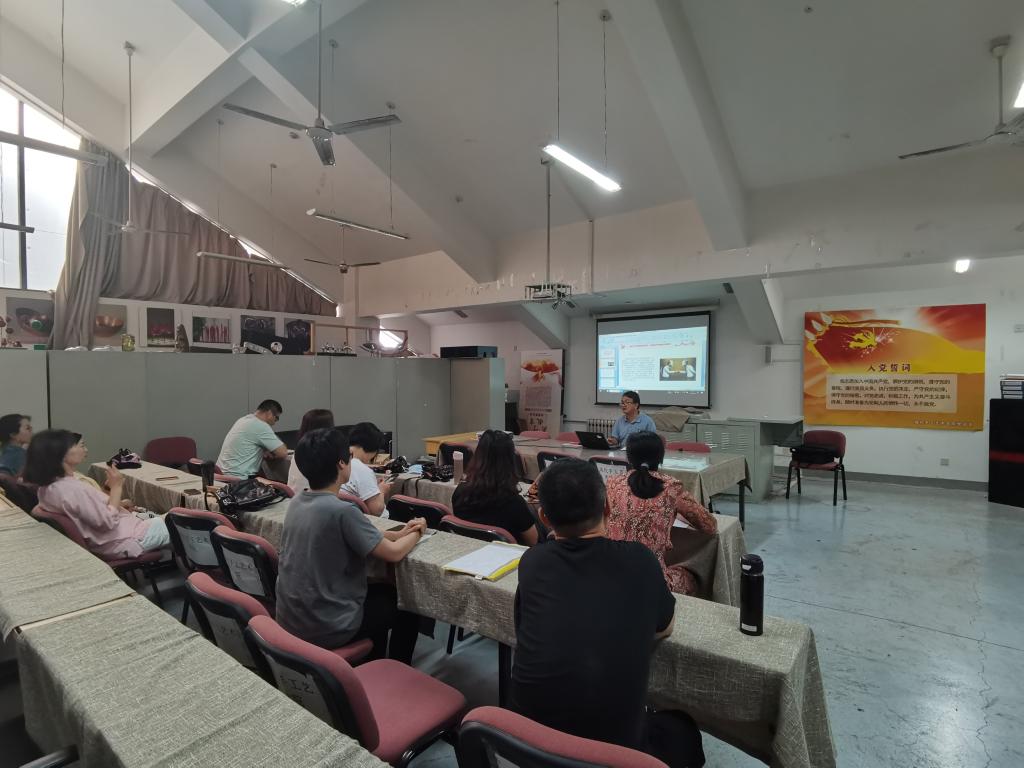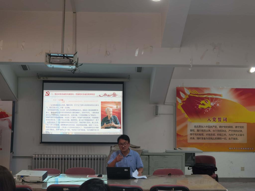 2021年6月25日,现代手工艺术学院党总支书记金伟在B444多媒体教室为学院党员教师讲授《对党忠诚》党史学习教育专题党课。