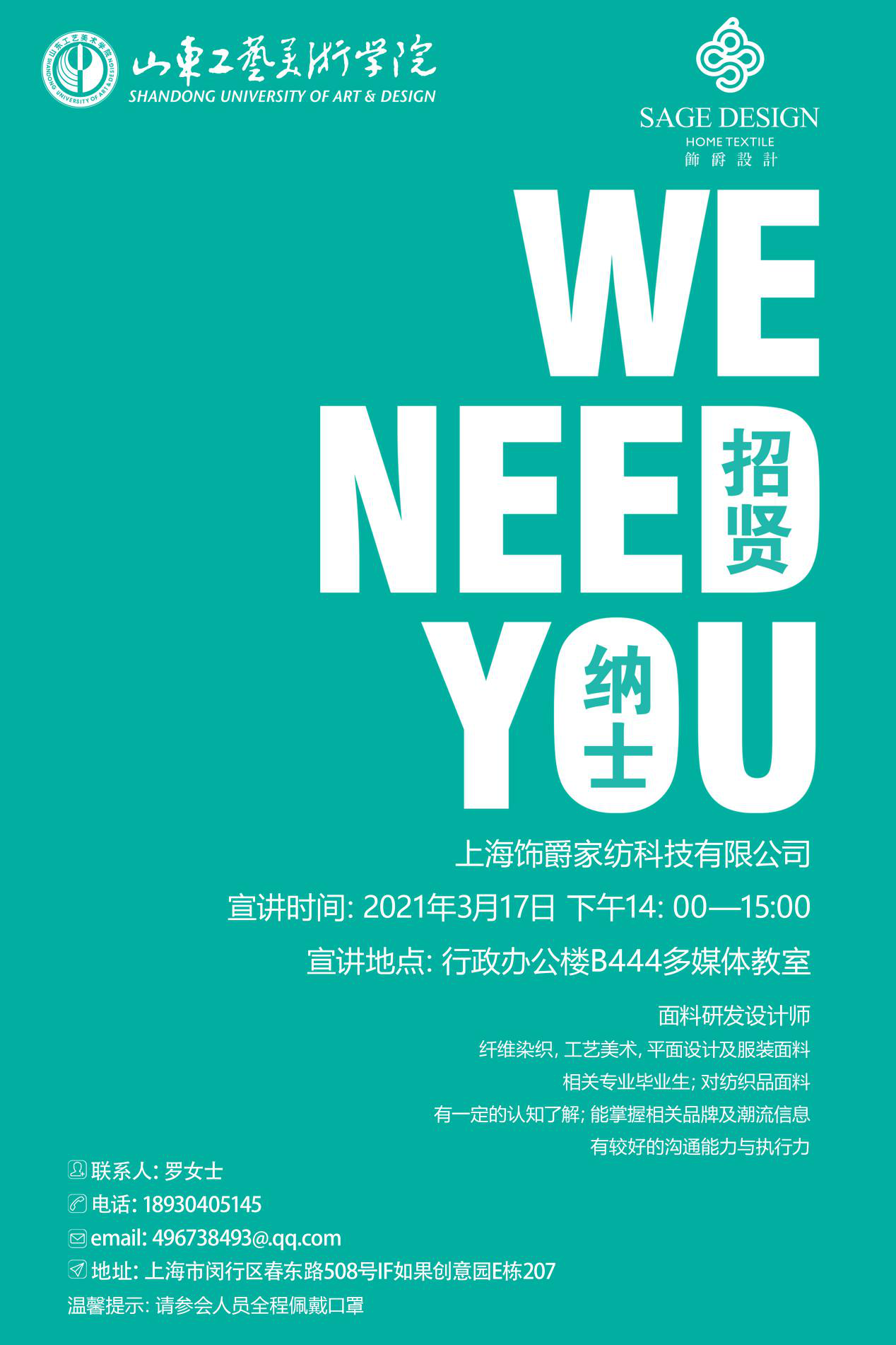 现代手工艺术学院2017级毕业生本着求真务实,与时俱进的观念意识,在本次与上海饰爵家纺科技有限公司的宣讲会上收获颇丰。同时,站在人生关键的十字路口上,2017级各位同学们勇于直面自身存在的问题,以自我革命与创新突破的意识不断改造与锤炼自己,不驰于空想、不骛于虚声,踏踏实实走好从校园到社会这一转折点的每一步,让“天工开物·匠心独运”的校训在以后的工作生活中继续薪火绵延下去。本次现代手工艺术学院与上海饰爵家纺科技有限公司就业宣讲会圆满结束,未来的种种发展依旧任重道远,衷心祝愿现代手工艺术学院2017级毕业生同学们前程似锦,未来可期。