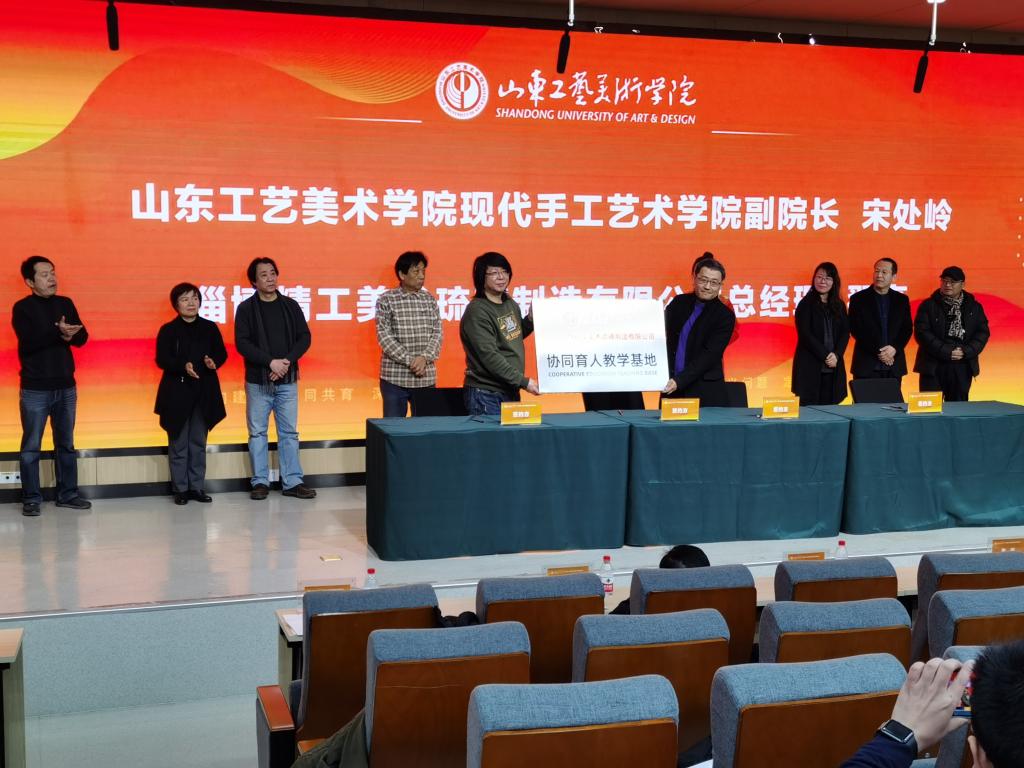 2019年,教务处组织了“产教融合定制课堂”项目申报工作。经统计,共有23门课程进行了项目申报,参与教师共计44人,相关企业59家。11月4日,教务处组织专家进行了集体评审,共遴选出17门“产教融合定制课堂”进行重点建设,现代手工艺术学院有5门课程被选入“产教融合定制课堂”建设项目。2021年1月5日,现代手工艺术学院邀请阳信瑞鑫集团有限公司,山东黄金鑫意工艺品有限责任公司,湘西土家银艺术品有限公司,沐愔坊艺术设计馆,黔东南州旺宝工艺品有限责任公司,淄博精工美术琉璃制造有限公司等相关共建企业参加了产教融合定制课堂签约挂牌仪式。