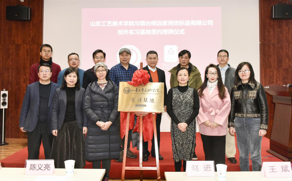 最后,现代手工艺术学院院长赵进与烟台明远家用纺织品有限公司常务副总陈义亮为教学实习基地签约揭牌。