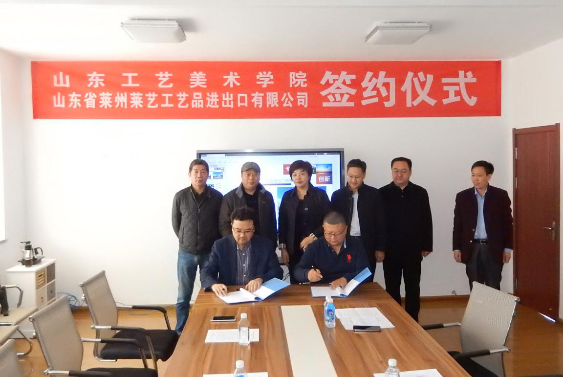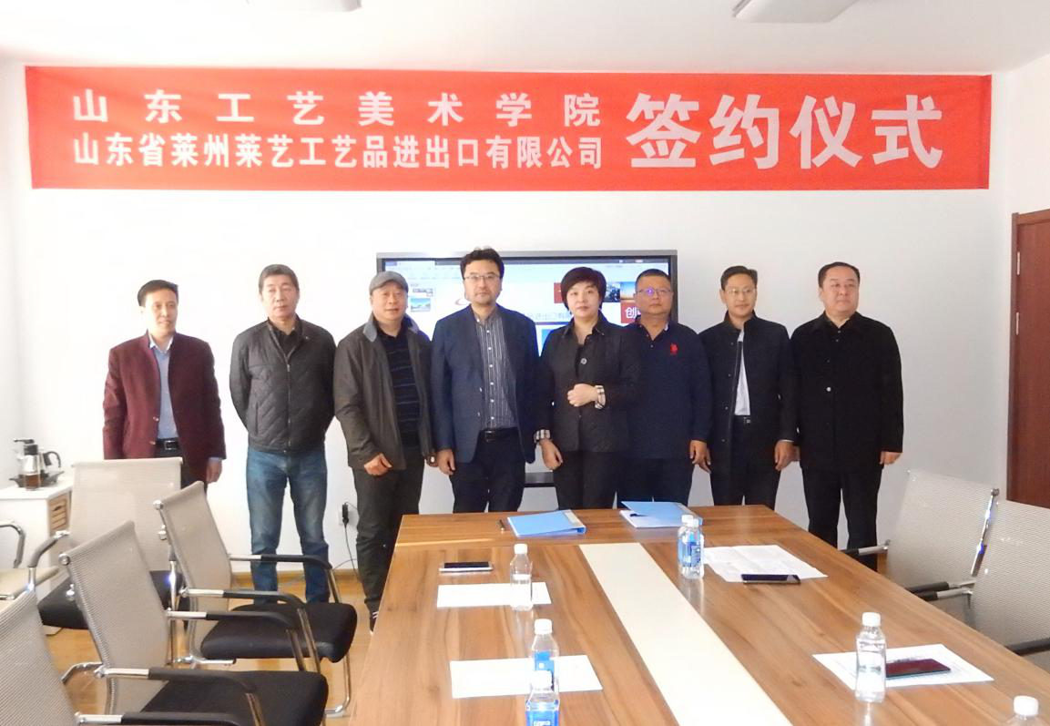 11月21日,山东省工艺美术学院与莱州市利富工艺品有限公司校外实习基地合作协议暨挂牌仪式在山东莱艺工艺品进出口公司举行。莱州市委宣传部杨玄迪部长,姜明副部长参加签约并座谈。