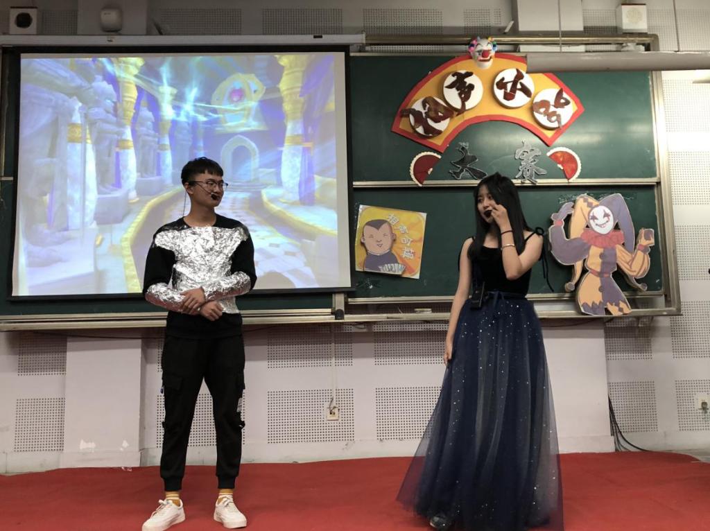 此外,比赛期间还有18级学长赵洛严、王睿带来的助兴表演,相声《多才多艺》,两人出色的配合,为相声小品大赛带来别样的风景。