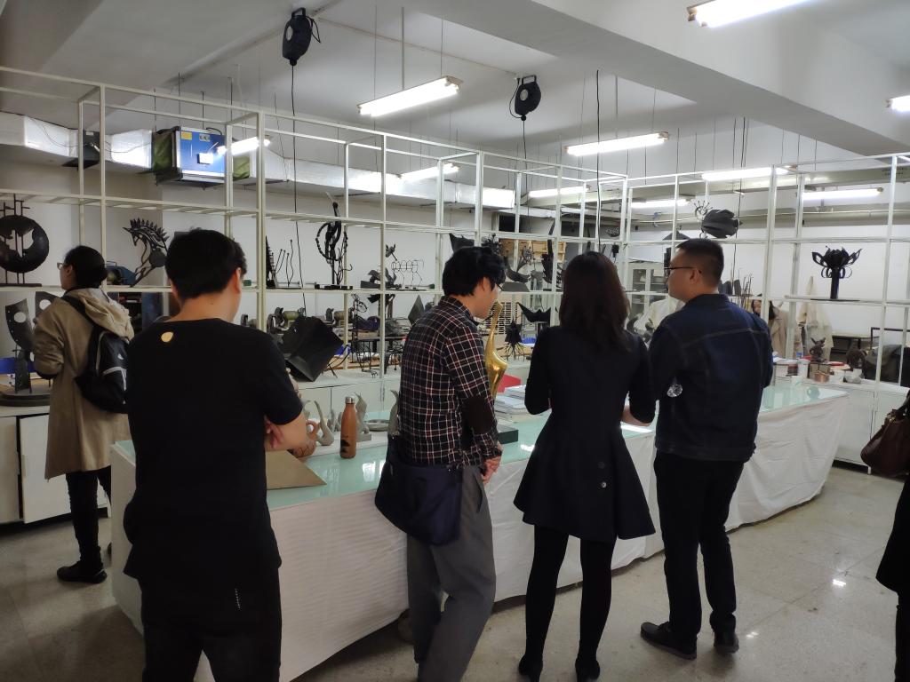 相关教师在志愿者的引导下参观了鲁迅美术学院大连校区工艺美术系工作室。