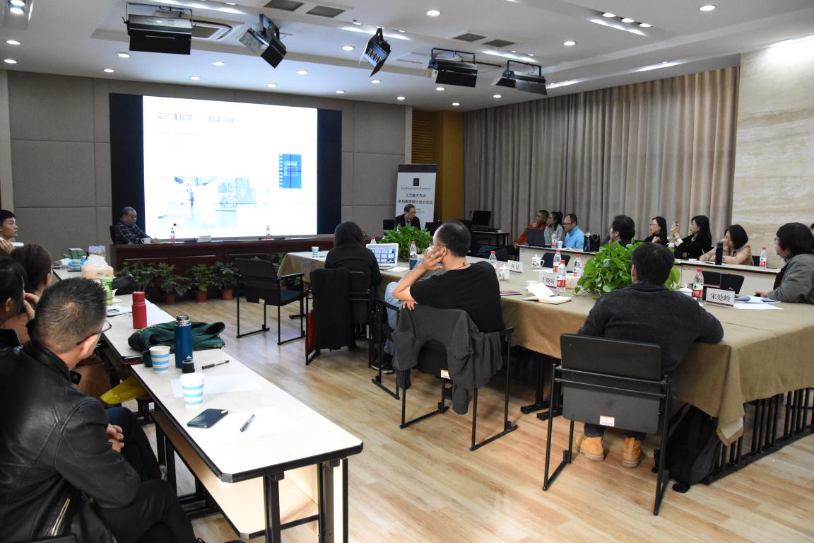 中国美术家协会工艺美术艺委会委员、南京艺术学院设计学院副院长、副教授周庆,以《实验室与工坊—南艺设计学院手工依实验室教学》为题进行发言。周教授首先介绍了南艺设计学院手工艺实验性教学模式和课程,说明未来专业和行业会融合,并在实验性教学中分析课程结构与设置;开放性、过程性、时代性的课程与课题;教学管理的方式和研究性课程特征,并解释学院等于试验场,专业等于实验室。为手工艺教学的发展提供了优秀的范例。
