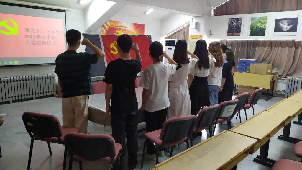 2019年9月6日上午,我院在长清校区综合楼B444多媒体教室举行了新发展党员入党宣誓仪式。学生党支部副书记刘化真同志、7名新发展党员、部分入党积极分子代表参加宣誓仪式。仪式由学生党支部委员任承彦同志主持。