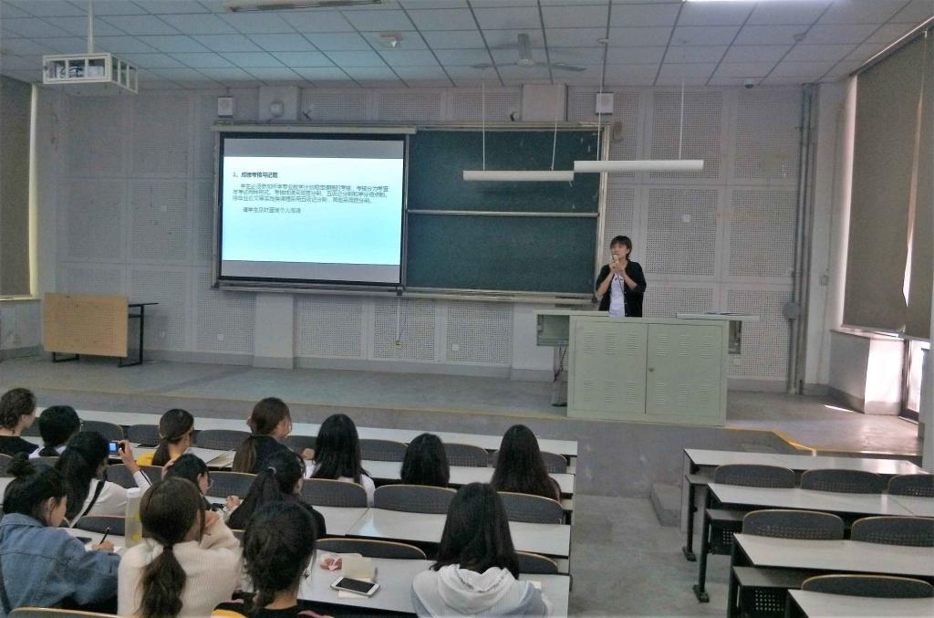 随后,邵世琦介绍了学校学分制改革等情况。新学期开始,新入校的本科新生将全部接受学分制教学管理,实现自主选课程、选教师。邵老师对课程设置、学分计算、选课原则、成绩考核、学分绩点等具体内容进行了详细说明。邵老师的讲解简明扼要,思路清晰,对帮助新生顺利完成即将进行的选课选师任务具有极大的促进作用。