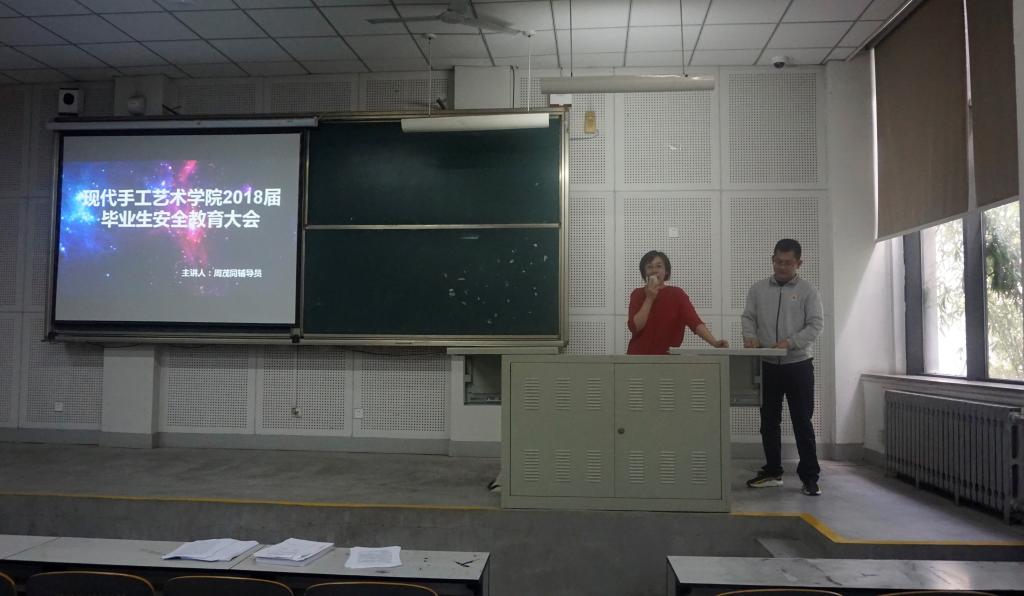 为了进一步提高毕业生安全意识,帮助毕业生完成离校前各项工作,确保毕业生安全文明离校,5月22日,现代手工艺术学院在三合堂召开2018届毕业生安全教育大会。大会由现代手工艺术学院2018届毕业生辅导员周茂同主持,党总支金伟书记,王国燕副书记及现代手工艺术学院2018届全体毕业生参加了本次大会。 会议伊始,王书记就遵守校规、校纪方面的事宜做了强调说明,提出毕业生要注意文明、安全、温暖离校,要遵守校纪校规,提高安全防范能力,注意宿舍外出安全。安全无小事,希望同学们要警钟长鸣,做一个文明有礼、遵纪守法的新时代好青年,平安离校,顺利毕业。随后,辅导员周茂同老师组织毕业生签订毕业生安全文明离校承诺书,对《毕业生登记表》填写进行了统一要求和说明,要求大家认真对待,做好毕业前的各项准备工作。最后,金书记对同学们提出了要求与期望。希望同学们能够珍惜和把握大学最后的宝贵时光,再接再厉,不断进取,为了理想奋斗到底。