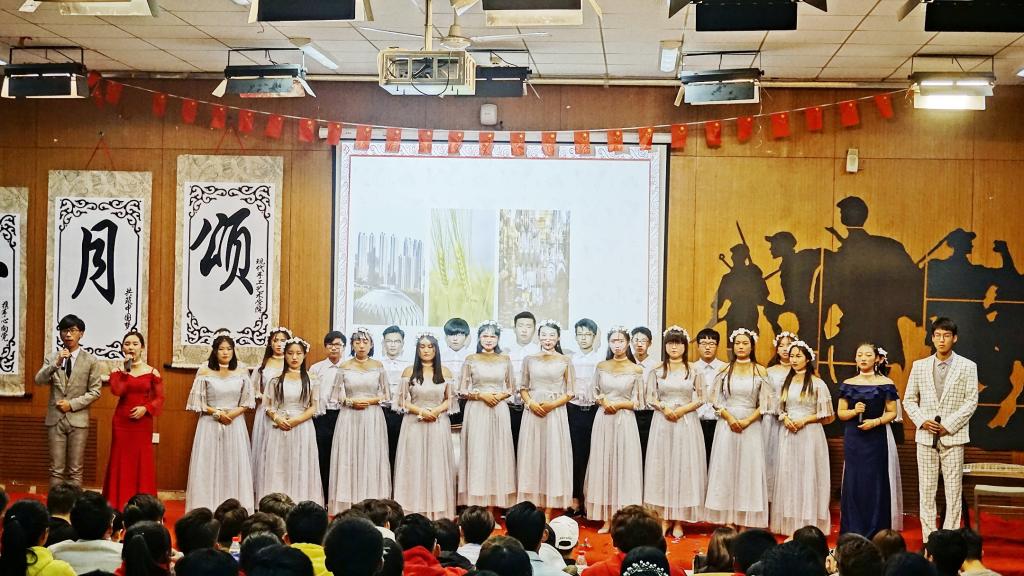 为激励同学们坚定理想信念,增强砥砺青春、奋勇前进的动力,2017年10月23日,由现代手工艺术学院举办的“携手心向党,共筑中国梦”第九届“十月颂”诗歌朗诵比赛在我校长清校区阶梯一顺利举行。莅临本次大赛的有各学院学生会主席及我院各部部长、副部长。担任本次比赛的评委有孙铭泽、陈伯瑜、胡月、李煊挚、刘嘉磊。此次大赛由苏明泽,赵燕主持,17级全体同学以班级为单位参加了此次比赛,充分展现出良好的精神面貌与爱国热情。