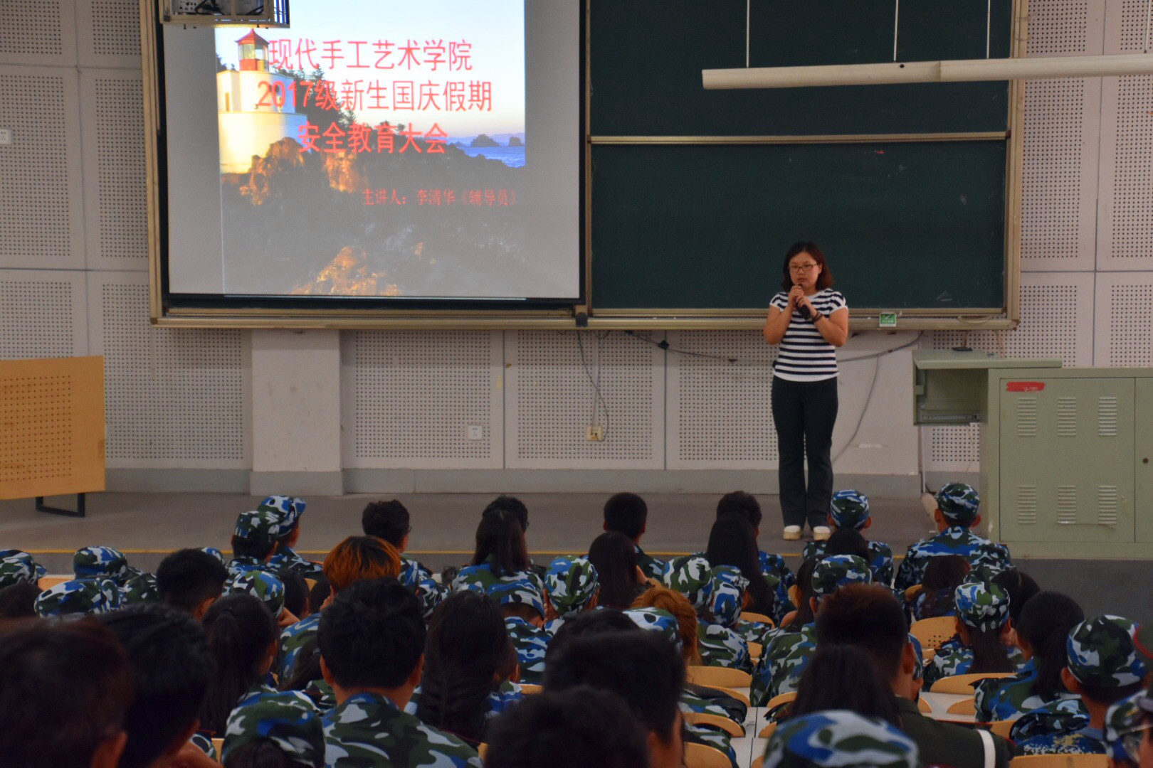 2017年9月29日上午11点,现代手工艺术学院于2025新澳门免费原料大全长清校区综合办公楼六合堂召开2017级国庆中秋假期安全教育大会。会议由我院新生辅导员李清华主持 17级全体新生及代理班主任参加了此次会议。
