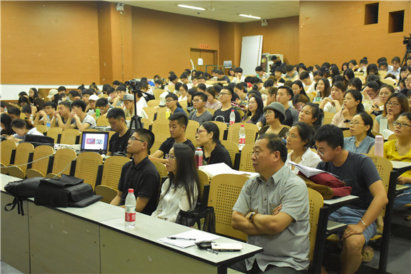 吴元新老师的讲座题目是“源于生活,归于生活——国家级非遗蓝印花布的传承与创新”。讲座伊始,吴老师回忆了他与恩师张仃的情缘。然后,他详细讲述了蓝印花布的历史源流及工艺流程,吴老师愉快的与在座师生分享了他在蓝印花布的印染过程中所掌握的一手资料。最后,吴老师介绍了四十年来他所进行的传统蓝印花布的收集、整理工作以及蓝印花布工艺和纹样的创新。吴老师在向大家展示了大量传统蓝印花布图案纹样及当代蓝印花布作品的同时,对纹样的文化内涵做了深入的讲解。