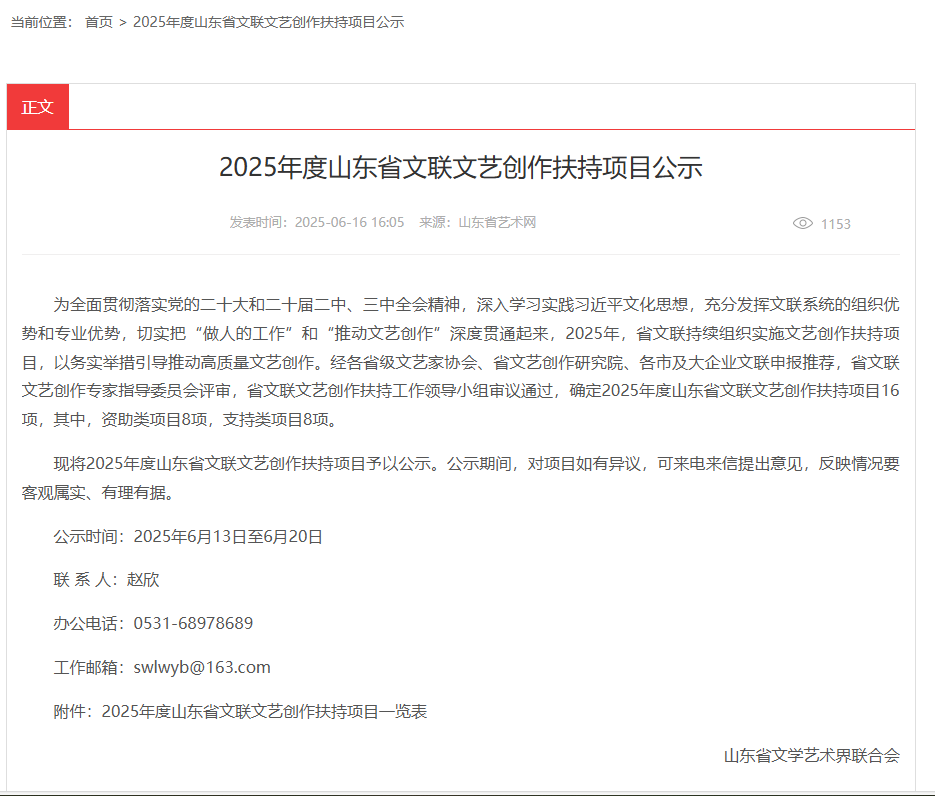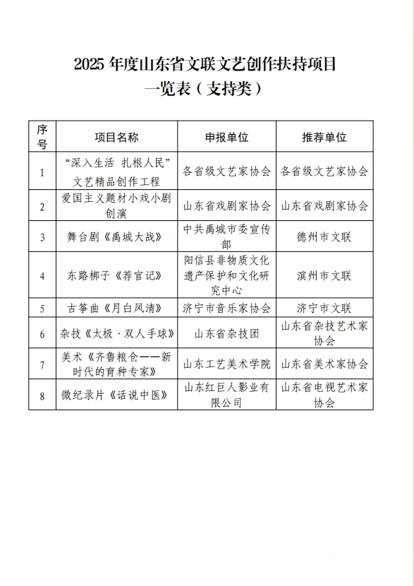 为深入贯彻落实党的二十大和二十届二中、三中全会精神,全面践行习近平文化思想,山东省文联将文艺人才培养与精品创作紧密结合,通过一系列务实举措,引导和推动全省文艺创作迈向高质量发展之路,此次入选的16个项目,涵盖多个艺术领域,代表了全省文艺创作的新方向和新成果。