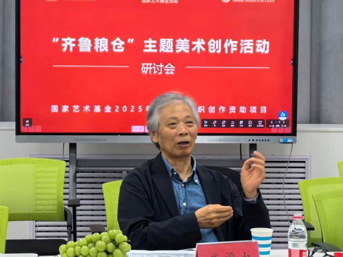 9月27日上午,造型艺术学院就国家艺术基金2025年度美术组织创作项目《“齐鲁粮仓”主题美术创作活动》召开专题研讨会,旨在聚焦创作核心环节,汇聚专家智慧,确保这一重大主题性创作活动有序高效实施。会议特邀中央美术学院教授、博士生导师唐勇力先生担任主评专家,首都师范大学袁玲玲教授、山东艺术学院杨斌教授到场交流。本次研讨会由造型艺术学院院长、项目负责人刘宁主持,项目创作团队20余位成员共同参与了此次会议。