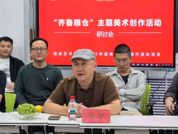 会议伊始,刘宁首先介绍了“齐鲁粮仓”主题美术创作活动项目自2024年12月获批立项以来的总体进展情况,并分别介绍了现阶段作品草图的绘制情况。他表示,目前项目正严格遵循国家艺术基金管理中心的要求有序推进,各项工作开局良好,为后续的深度创作奠定了坚实基础。