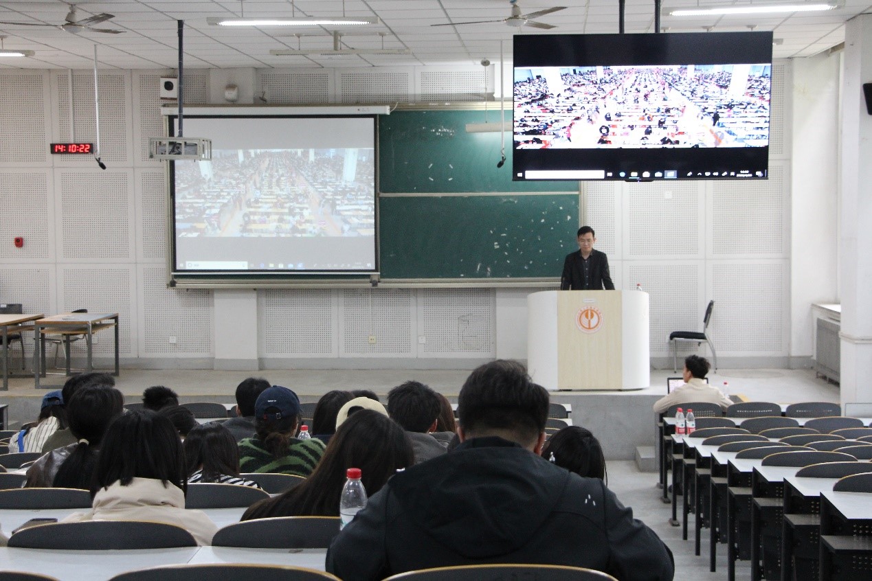 巩光振首先播放了企业文化宣传片,向同学们介绍了公司的经营板块和企业文化,详细生动的讲述了自己的大学生活还有创业初期遇到的一些困难和问题,以及解决问题的方法和技巧,具有很强的实用性和指导性,让同学们受到深刻启发。最后,巩光振激励大家,要对自己的能力方面要求更高,努力提升自己的各方面水平,并鼓励大家在创新创业的道路上要勇于试错,不断从失败中走向成功。