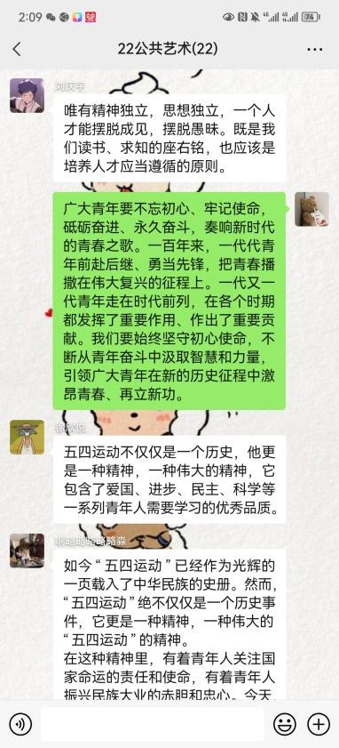 5月5日至6日,造型艺术学院各团支部通过主题班会、主题团日等多种形式开展习近平总书记的回信精神学习,鼓励全体同学积极参与学习活动,通过线上线下相结合的方式,交流思想与心得,深入了解建设农业强国战略部署,热议祖国未来、激发报国情怀,参加的团员青年都深受教育与启发。