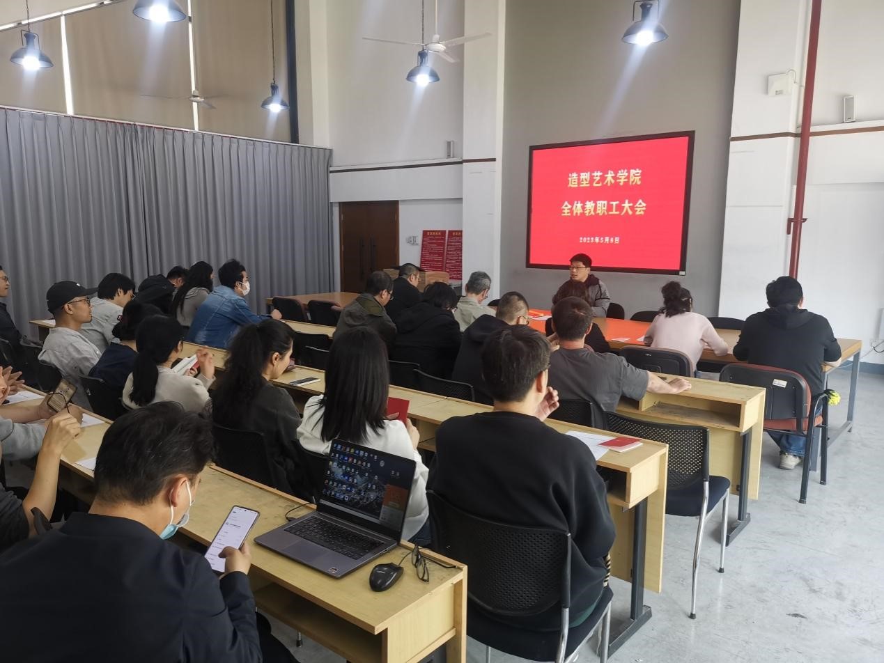 5月8日上午,造型艺术学院在四楼多媒体召开全体教职工大会,党总支书记李希进主持会议。