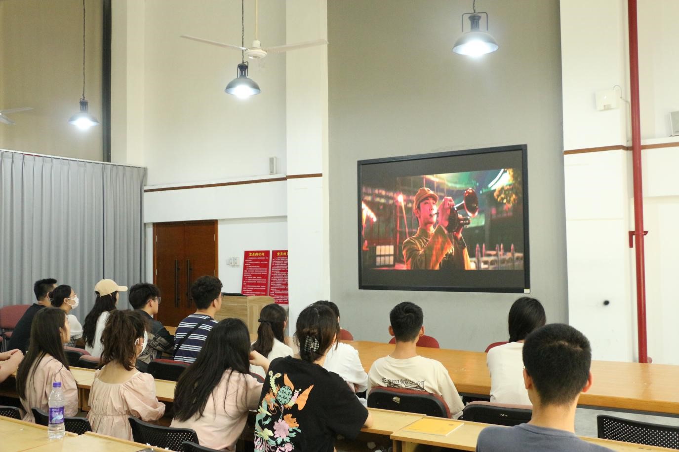 为学习贯彻习近平新时代中国特色社会主义思想主题教育,落实“党章集中学习月”活动,加深全体党员对党章内容的理解和认识,提高党员的信念与爱国热情,5月25日,造型艺术学院学生党支部书记许威治、辅导员朱员、谢军组织全体党员于四楼多媒体观看学习《百年党章》、《我和我的祖国》等系列爱党爱国影片视频。