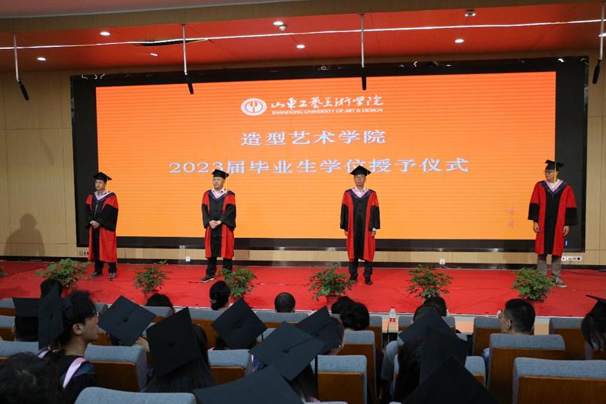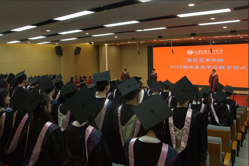 首先,造型艺术学院院长刘宁宣读了授予2023届本科毕业生学士学位资格名单并发表致辞,向我院121名以优异的成绩准予毕业并被授予学士学位的同学表示祝贺,对付出辛勤劳动的全体教职工致以最衷心的感谢。毕业是新生活的开启,也是事业之路、艺术之路的又一次启航。他希望同学们牢记“天工开物匠心独运”的校训,心存感恩、居以敬心,把个人才华同国家民族的前途命运联系在一起,做一个有能力、有情怀、有胸怀、有格局的山工艺人。祝愿同学们毕业快乐,希望大家常回来看看,表示造型艺术学院永远是同学们的坚强后盾和温馨的家!