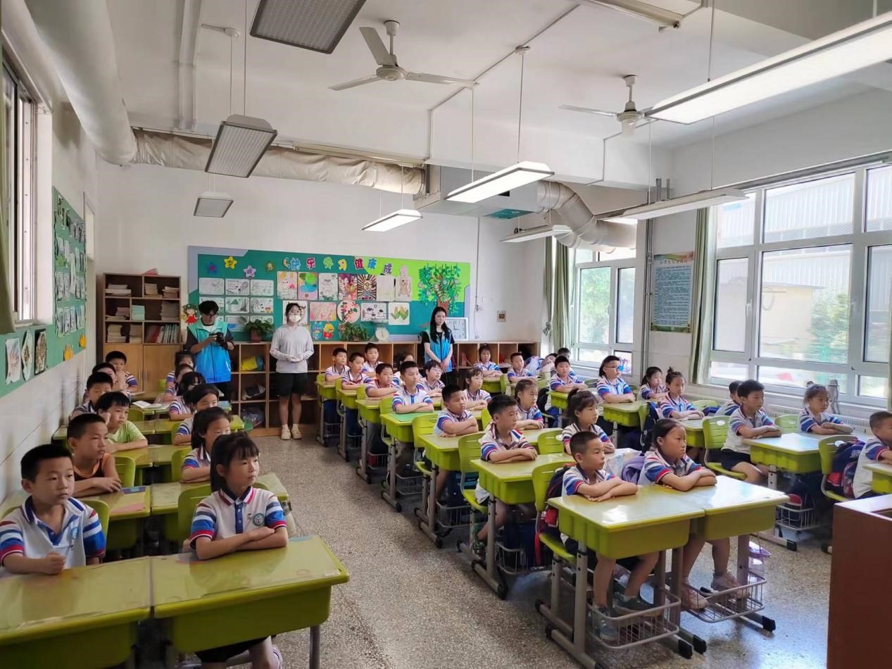 (宣讲团成员与济南市市中区罗而小学同学们合影)