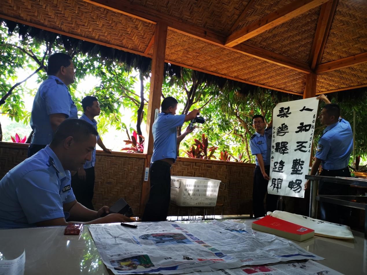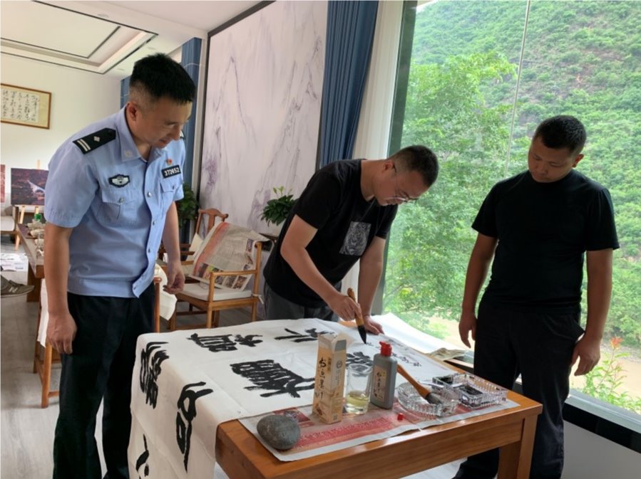 7月27日,秦镜教授与陈凯副教授一同前往红旗桥边境检查站,进行了参观惠通桥旧址和文艺交流主题笔会等活动。了解了惠通桥的历史以及在抗战时发挥的巨大作用,在主题笔会上,陈凯老师将连日来所见与灵感化作笔墨,书写和创作出一幅幅反映保山风土人情、山水风光、讴歌乡村振兴与警民一心的佳作,展现保山的自然之美、人文之美。开展文化交流有助于加强和保持单位间的联系以及同人民群众的血肉联系,“为公安队伍的同志创作文艺作品,可以丰富公安队伍的文化生活,倡导美德健康的生活方式,以期达到凝聚警心、激励斗志的目的。”陈凯表示。