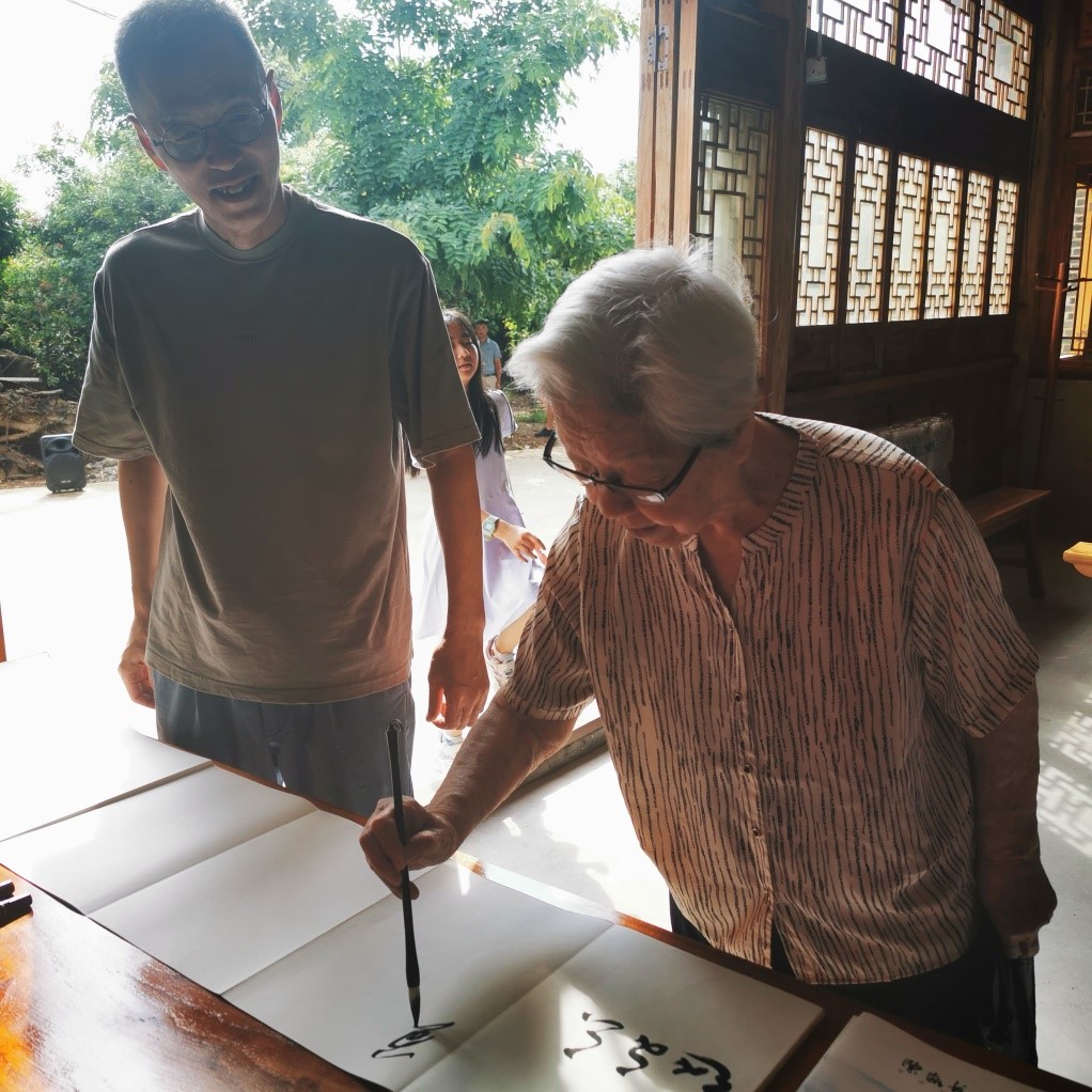 陈凯老师挥毫留墨并与保龙二大队同志们共同参观了曾题写的《同路同心,同力同行》。